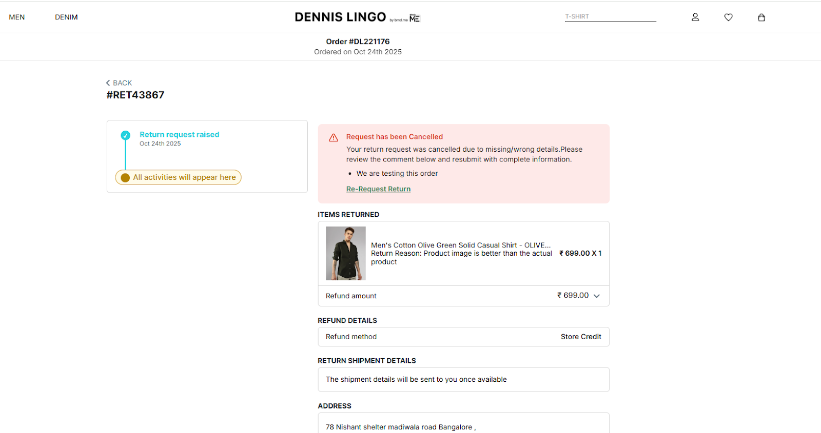 When a customer raises an R/E request that does not meet policy, L2 reviews and rejects the request with a reason.