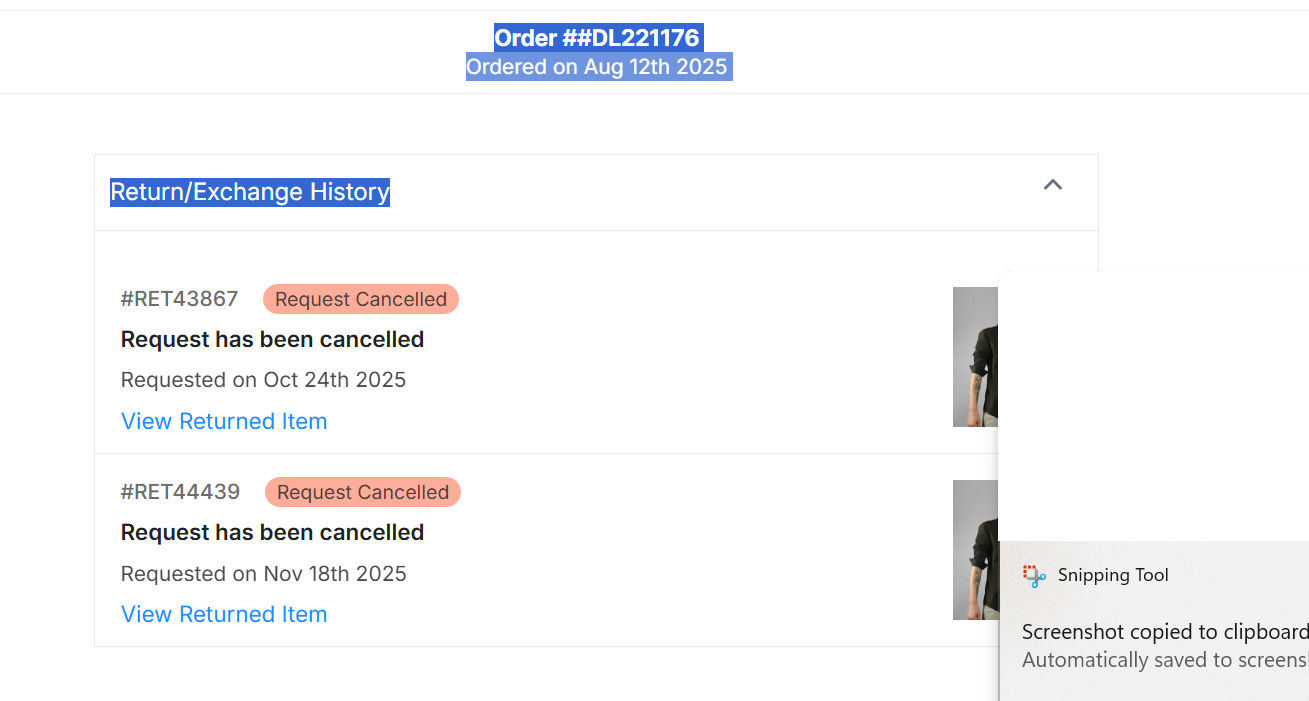 To allow customers to re-raise Return or Exchange (R/E) requests for the second time on our D2C website/RP link, provided they are within the defined R/E policy window.